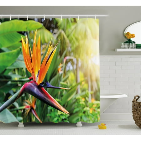 Plant Shower Curtain Close Up Image Of Strelitzia Reginae Bird Of Paradise Flower Madeira Island Portugal Fabric Bathroom Set With Hooks